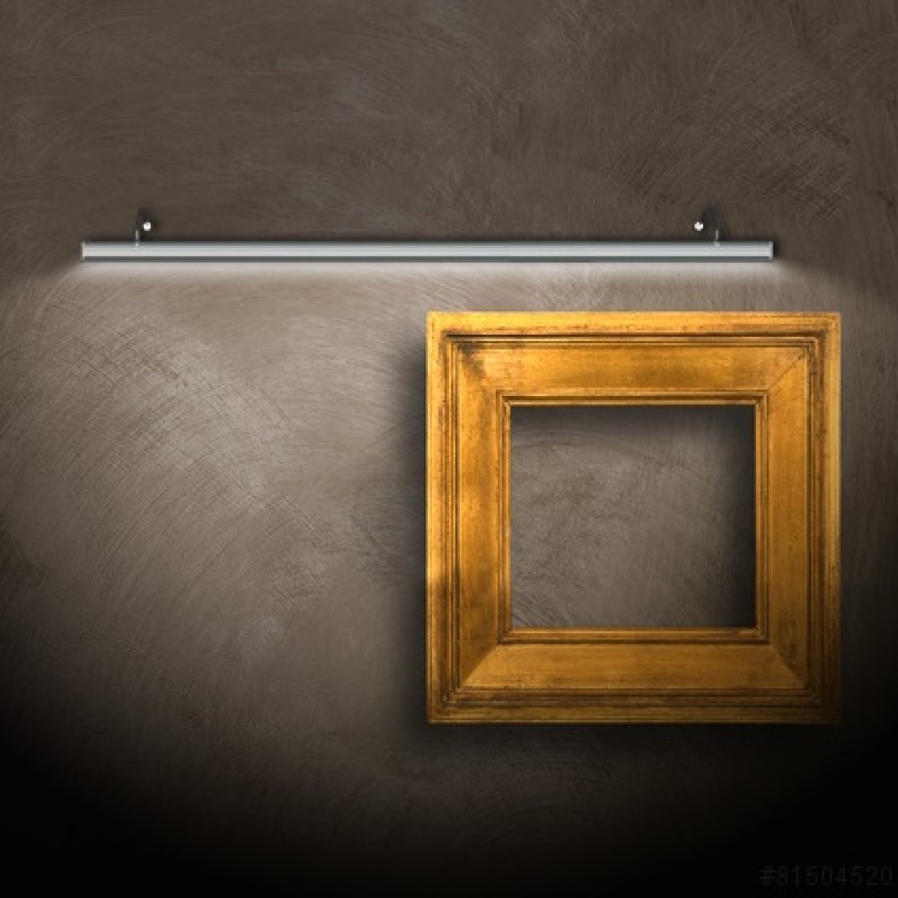 Profilo idoneo per l’installazione a parete. Il fissaggio avviene tramite due staffe rigide che rendono il profilo ideale per l’installazione sopra una specchiera oppure in gallerie d’arte.